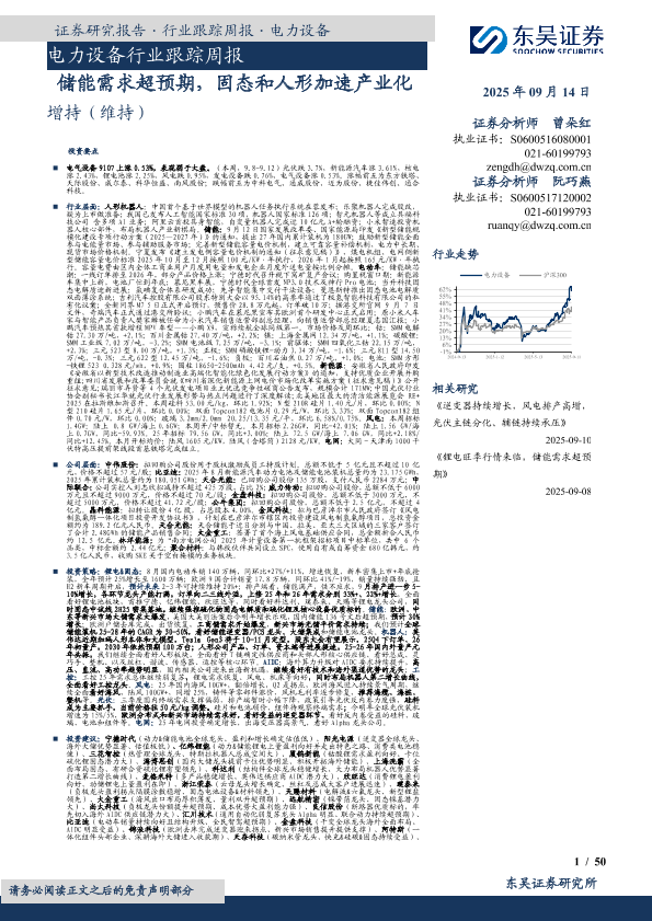 【东吴证券】【202509】储能需求超预期,固态和人形加速产业化-50页