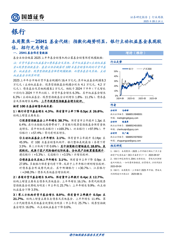 【国盛证券】【202509】25H1基金代销:指数化趋势明显,银行主动权益基金表现较佳,招行尤为突出-15页