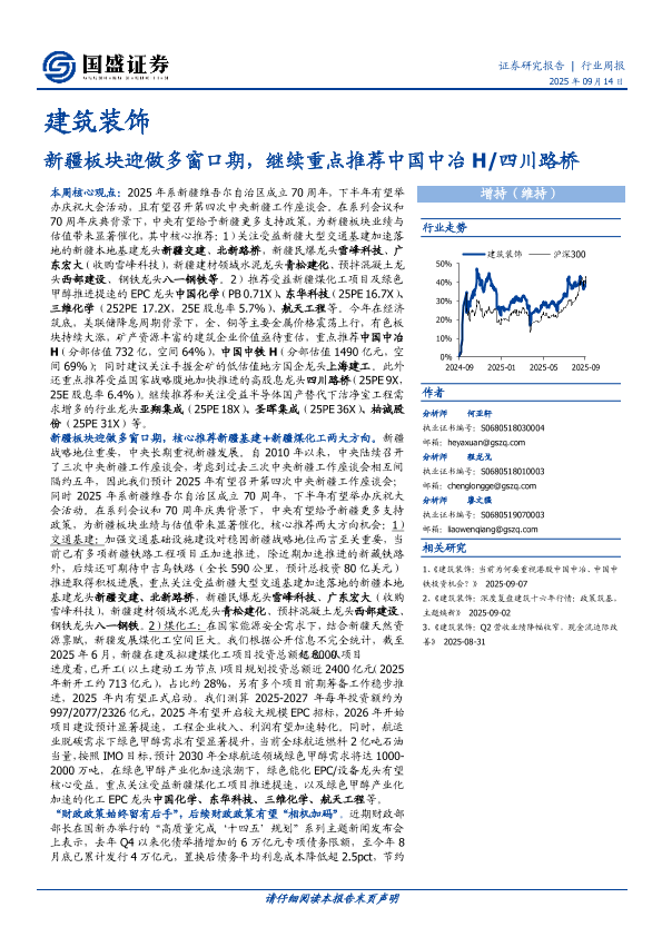 【国盛证券】【202509】新疆板块迎做多窗口期,继续重点推荐中国中冶H 四川路桥-15页