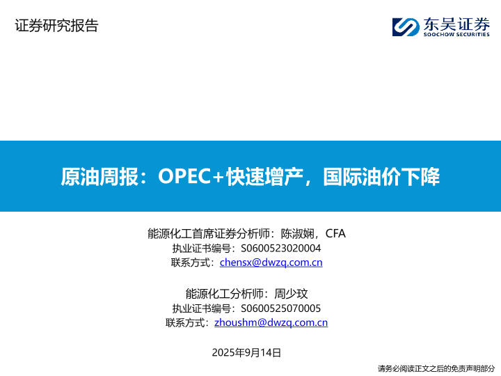 【东吴证券】【202509】原油周报:OPEC+快速增产,国际油价下降-60页