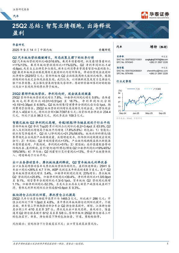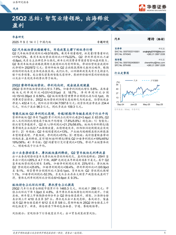 【华泰证券】【202509】25Q2总结:智驾业绩领跑,出海释放盈利-18页