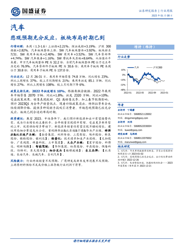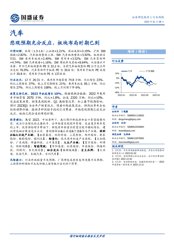 【国盛证券】【20230108】汽车行业周报:悲观预期充分反应,板块布局时期已到-22页