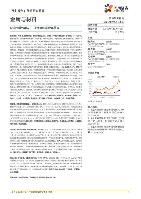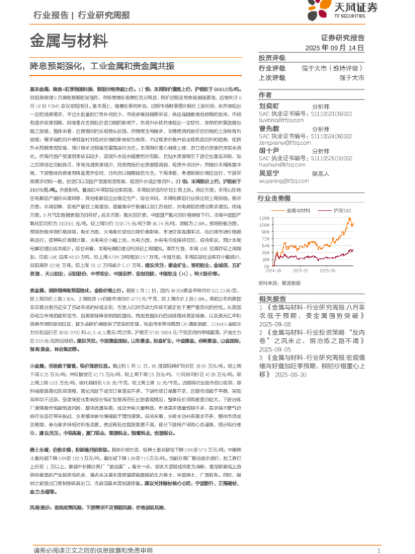 【天风证券】【202509】金属与材料行业研究周报:降息预期强化,工业金属和贵金属共振-15页