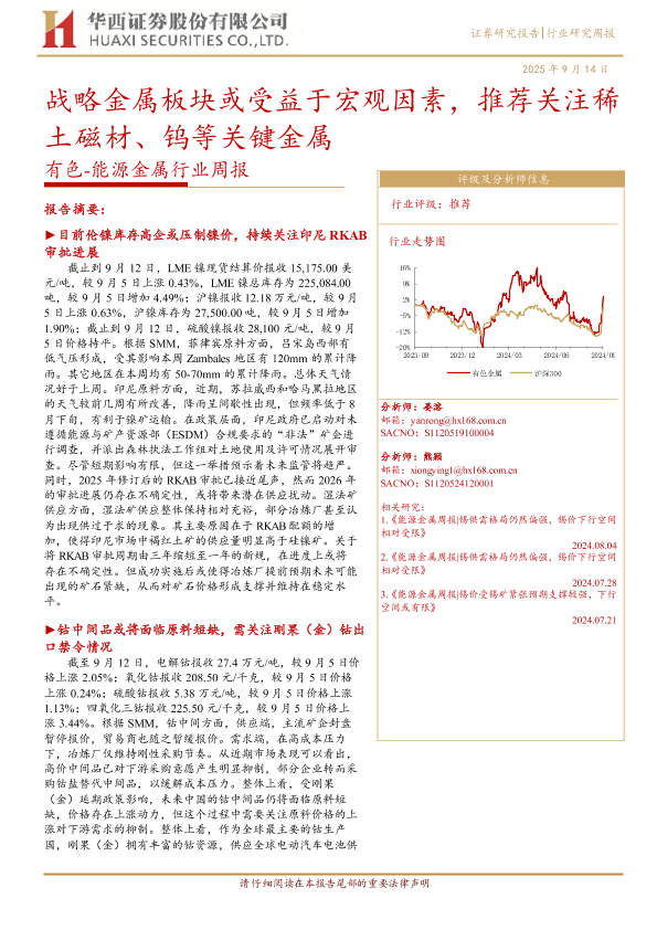 【华西证券】【202509】战略金属板块或受益于宏观因素,推荐关注稀土磁材、钨等关键金属-24页