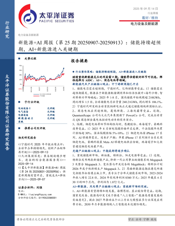 【太平洋证券】【202509】新能源+AI周报(第25期):储能持续超预期,AI+新能源进入关键期-15页