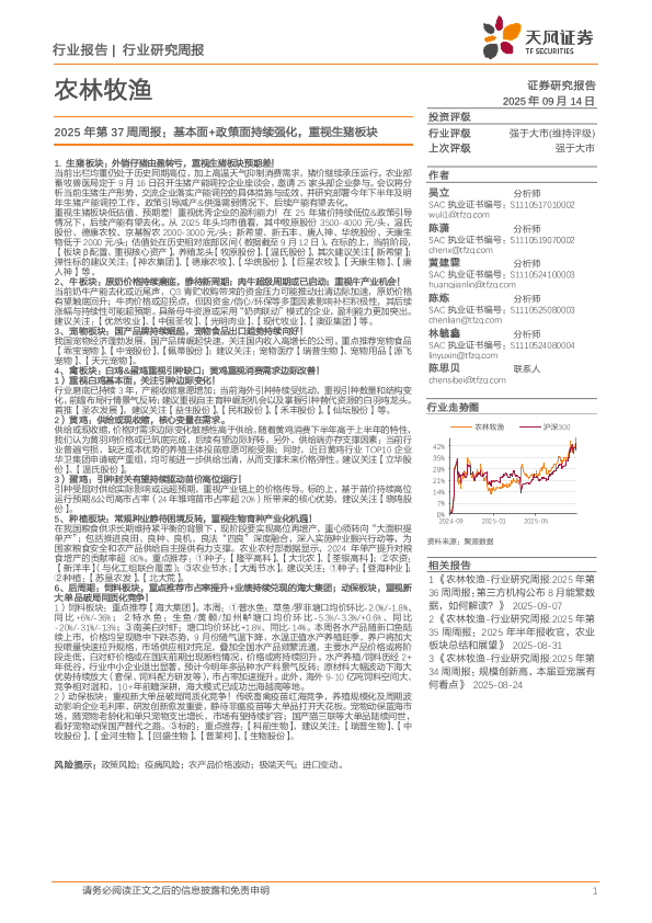 【天风证券】【202509】农林牧渔行业2025年第37周周报:基本面+政策面持续强化,重视生猪板块-15页