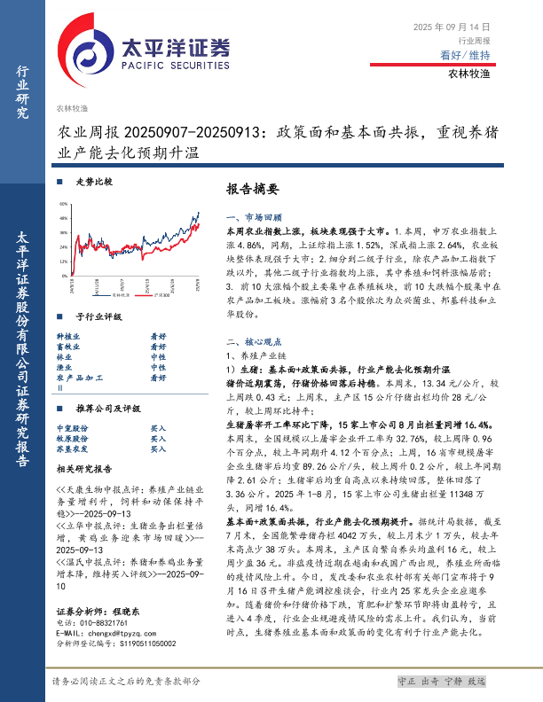 【太平洋证券】【202509】农业周报 20250907-20250913:政策面和基本面共振,重视养猪业产能去化预期升温-18页
