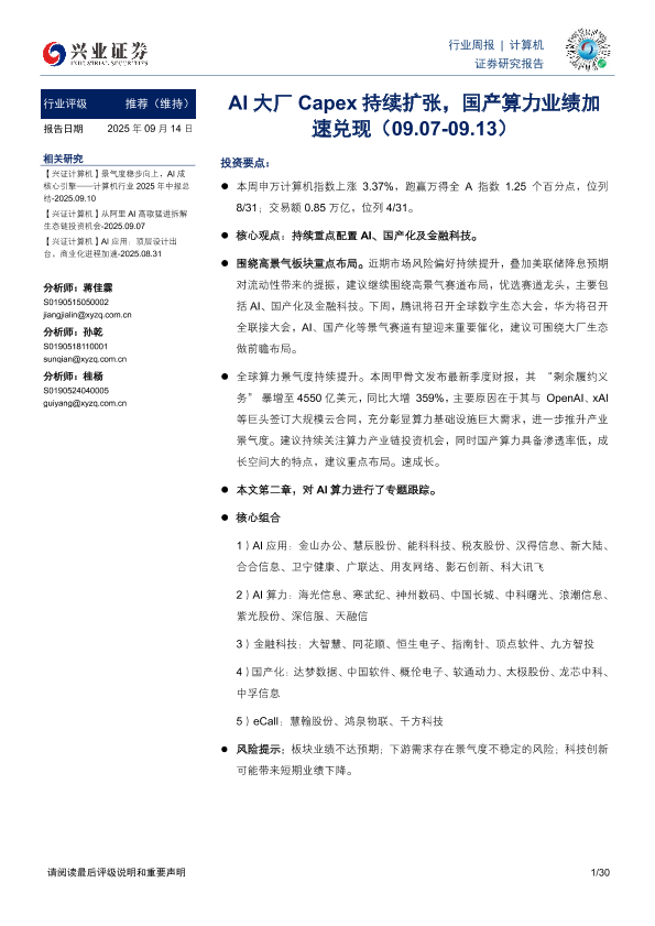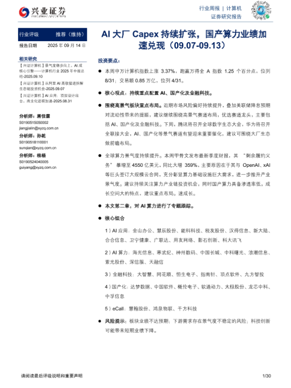 【兴业证券】【202509】AI大厂Capex持续扩张,国产算力业绩加速兑现-30页