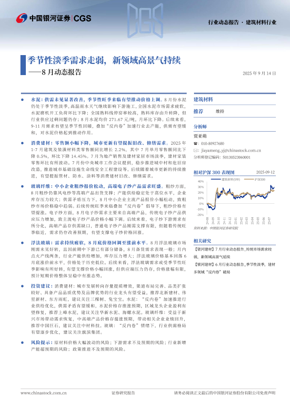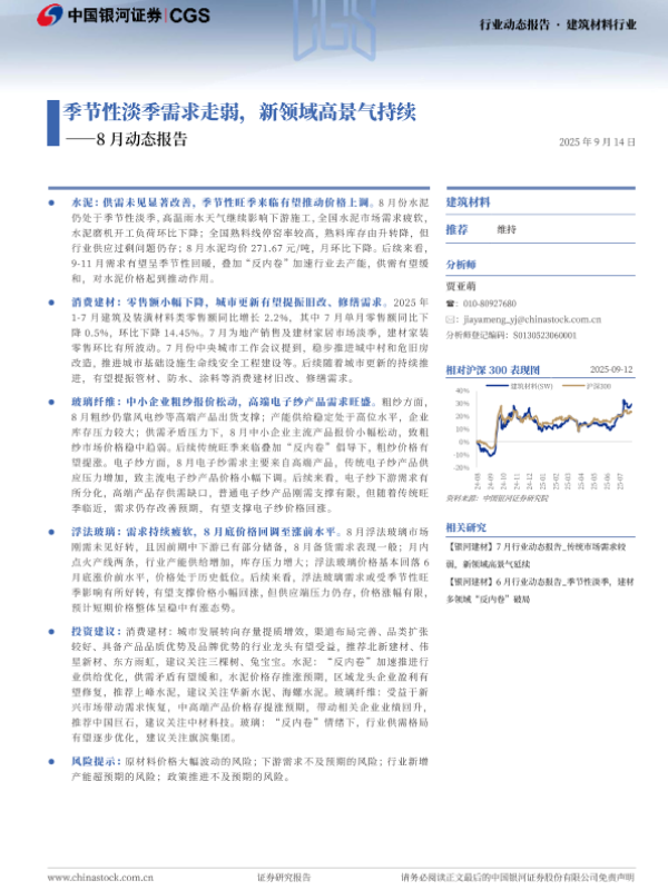 【银河证券】【202509】季节性淡季需求走弱,新领域高景气持续——8月动态报告-22页