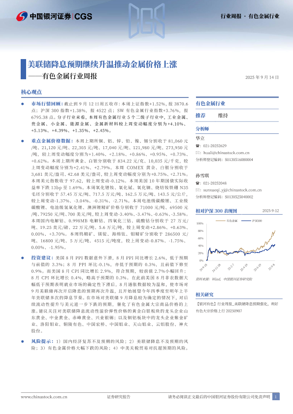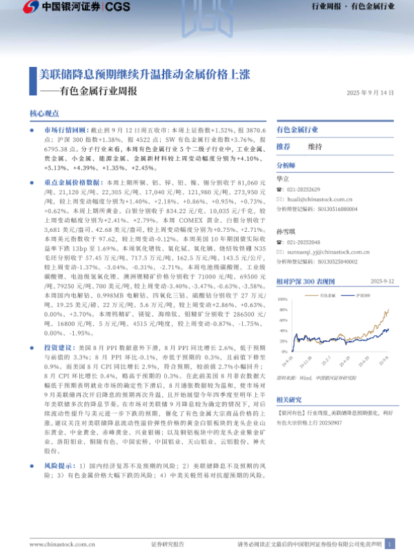 【银河证券】【202509】美联储降息预期继续升温推动金属价格上涨——有色金属行业周报-21页