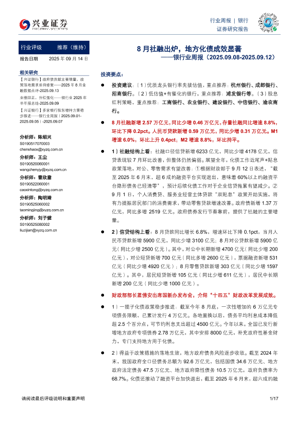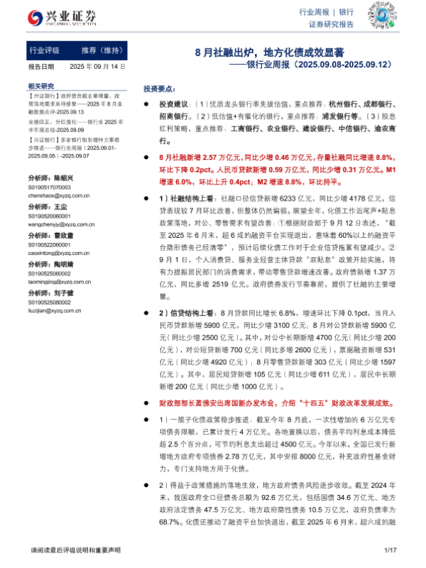 【兴业证券】【202509】8月社融出炉,地方化债成效显著-17页