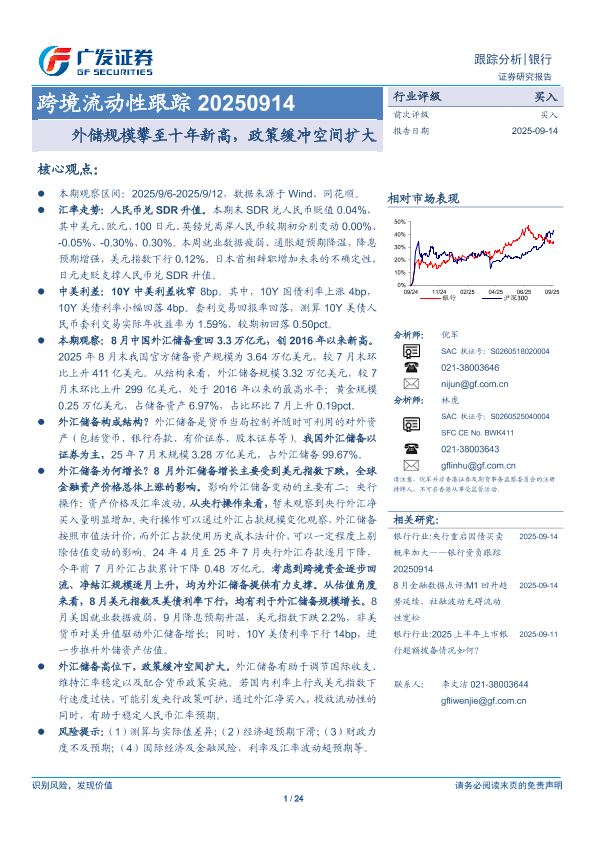 【广发证券】【202509】跨市场流动性跟踪:外储规模攀至十年新高,政策缓冲空间扩大-24页