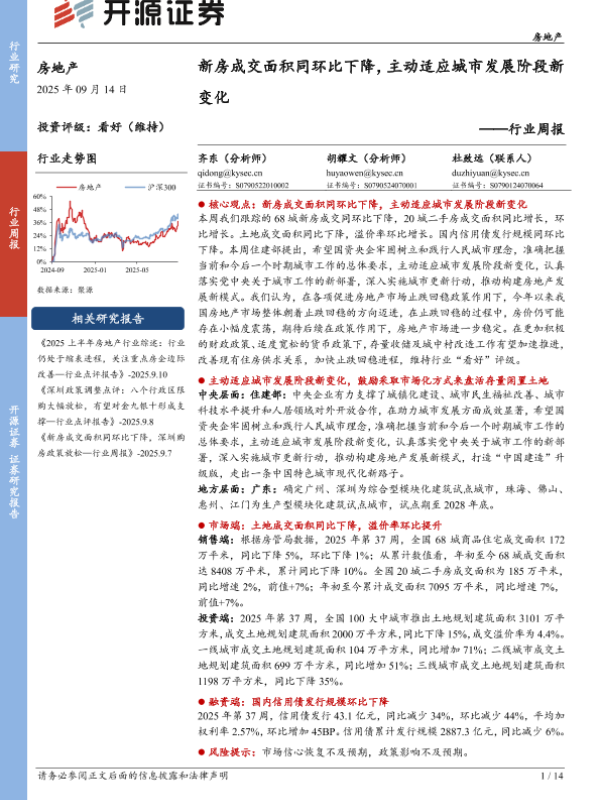 【开源证券】【202509】新房成交面积同环比下降,主动适应城市发展阶段新变化-14页