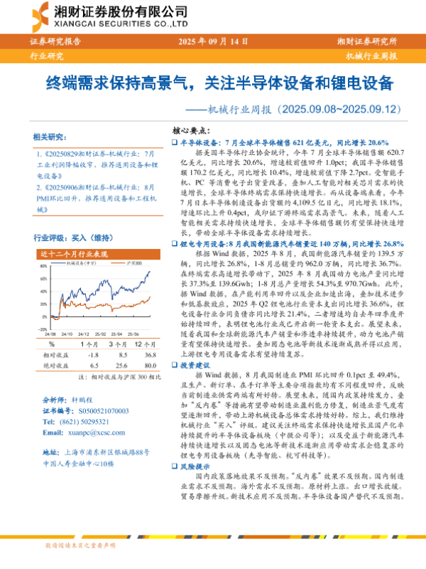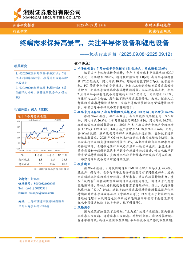 【湘财证券】【202509】终端需求保持高景气,关注半导体设备和锂电设备-15页