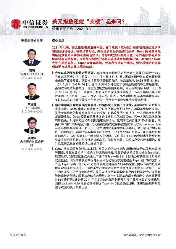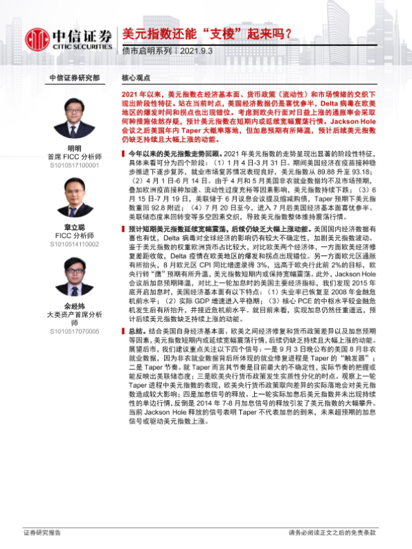 【中信证券】【20210903】债市启明系列:美元指数还能“支棱”起来吗?-31页