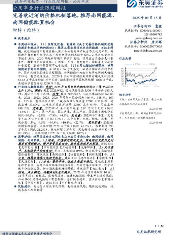 【东吴证券】【202509】完善就近消纳价格机制落地,推荐南网能源、南网储能配置机会-22页