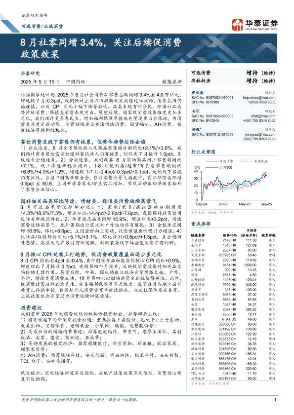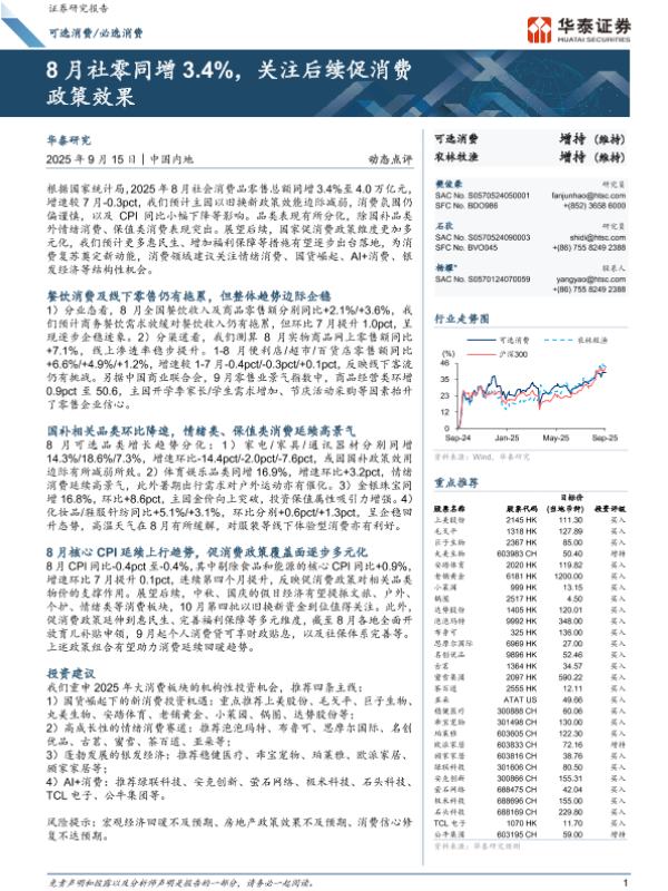 【华泰证券】【202509】2025年8月社零同增3.4%,关注后续促消费政策效果-14页