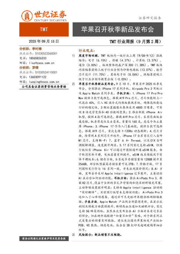 【世纪证券】【202509】苹果召开秋季新品发布会-17页