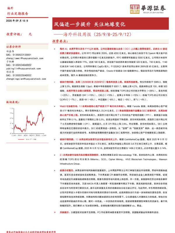 【华源证券】【202509】海外科技周报(25/9/8-25/9/12):风偏进一步提升 关注地缘变化-12页