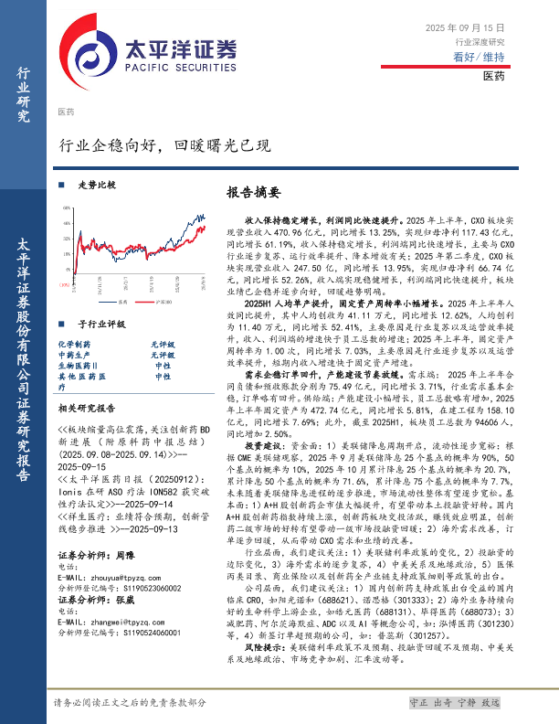 【太平洋证券】【202509】医药行业企稳向好,回暖曙光已现-28页