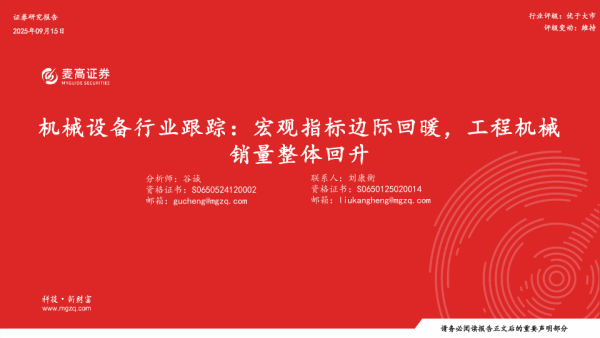 【麦高证券】【202509】机械设备行业跟踪:宏观指标边际回暖,工程机械 销量整体回升-29页