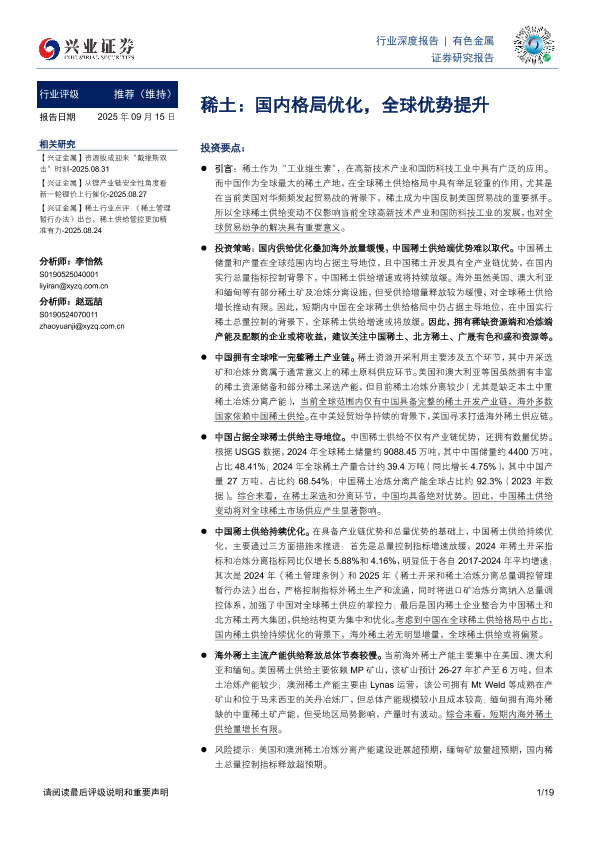 【兴业证券】【202509】稀土:国内格局优化,全球优势提升-19页