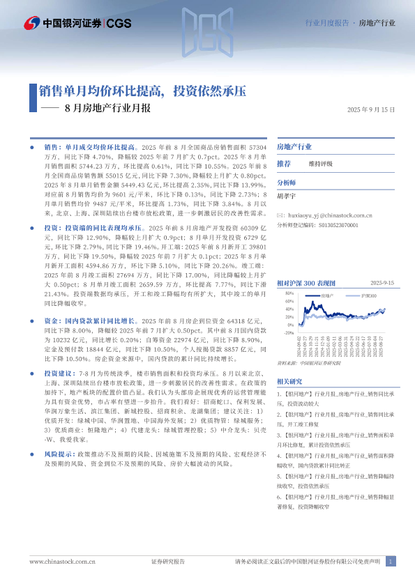 【银河证券】【202509】销售单月均价环比提高,投资依然承压—— 8月房地产行业月报 2025年 9月 15日-11页
