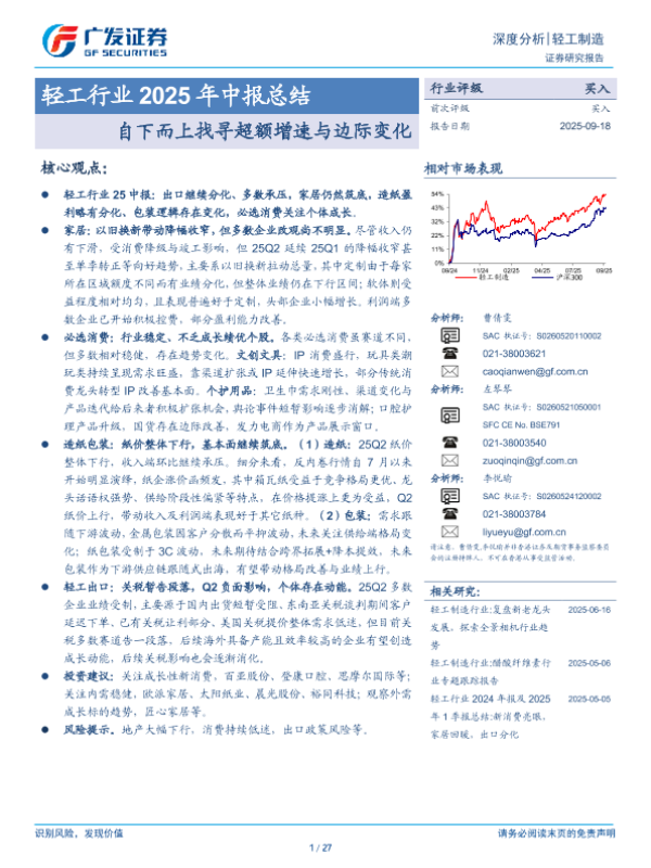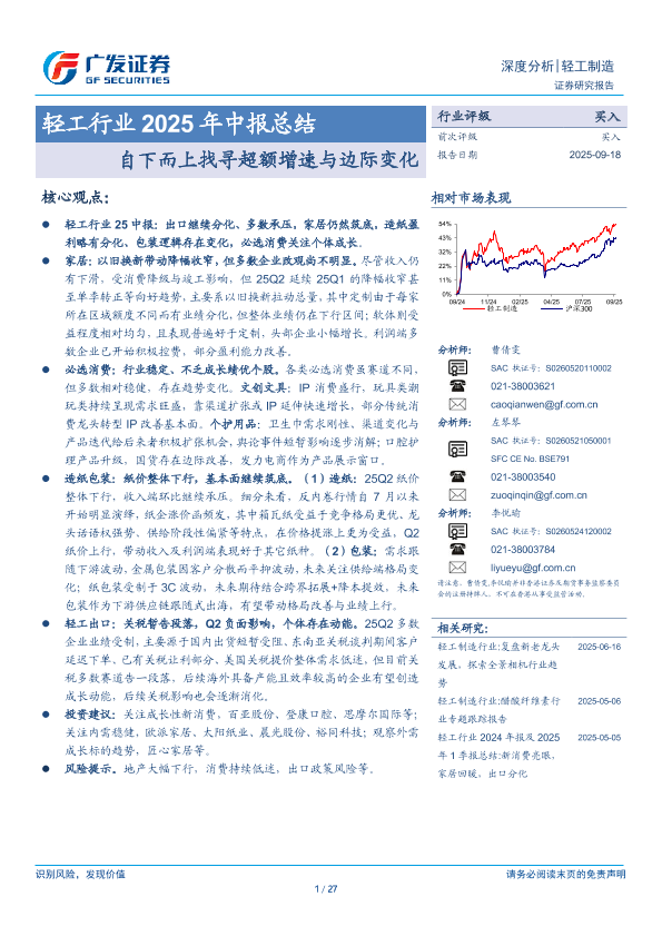 【广发证券】【202509】轻工行业2025年中报总结:自下而上找寻超额增速与边际变化-27页