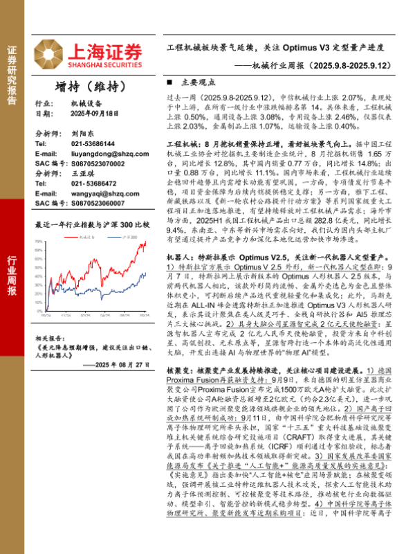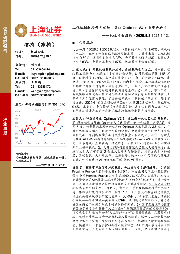 【上海证券】【202509】工程机械板块景气延续,关注Optimus V3定型量产进度-16页