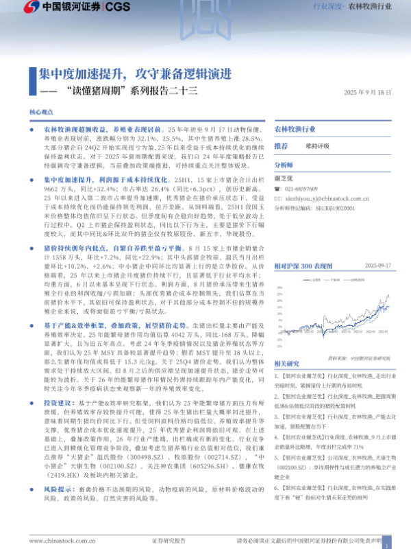 【银河证券】【202509】集中度加速提升,攻守兼备逻辑演进——“读懂猪周期”系列报告二十三-26页