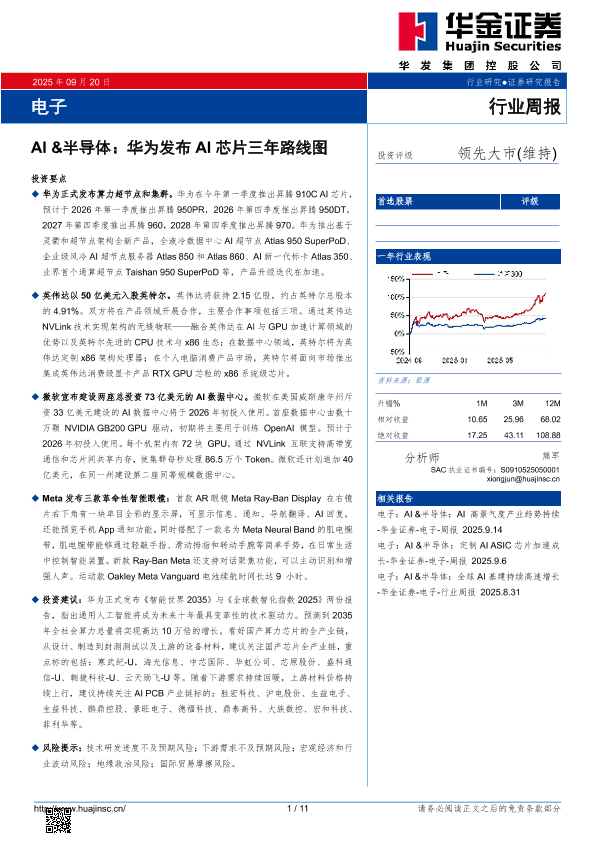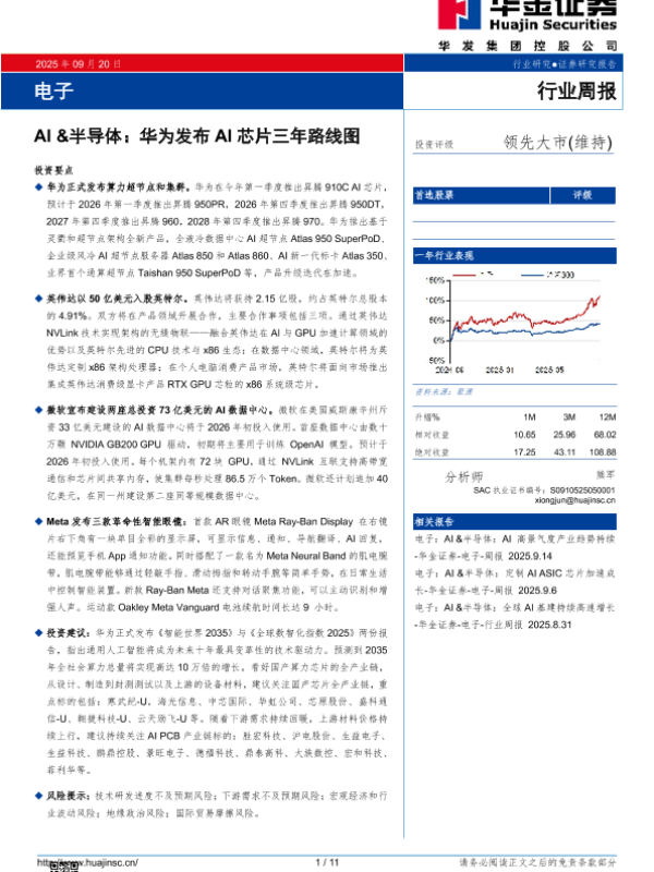 【华金证券】【202509】电子行业周报:AI&半导体:华为发布AI芯片三年路线图-11页