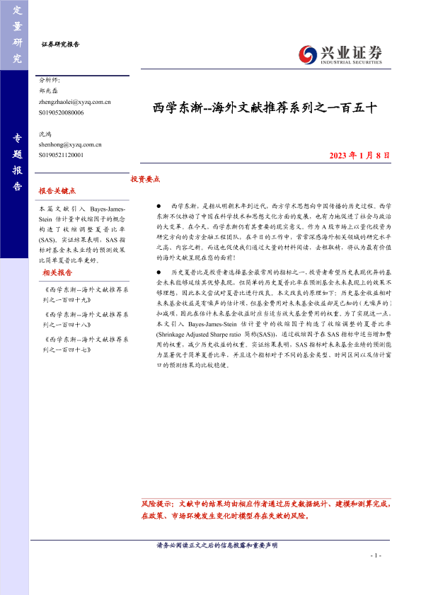 Bayes-James-Stein估计量 基金选择 夏普比率 量化投资 金融工程