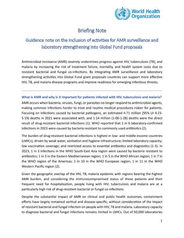 【World Health Organization】【2023】Guidance note on the inclusion of activities for AMR surveillance and laboratory strengthening into Global Fund proposals-9页