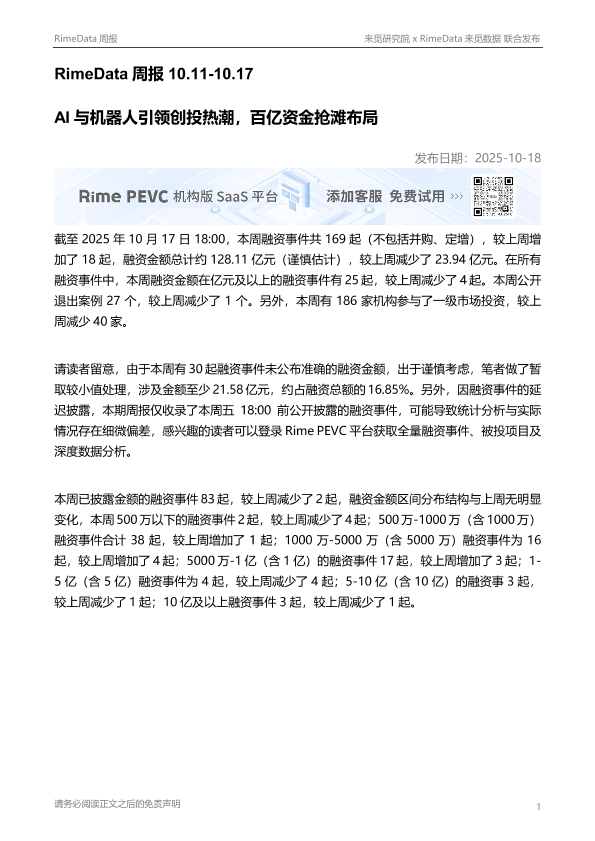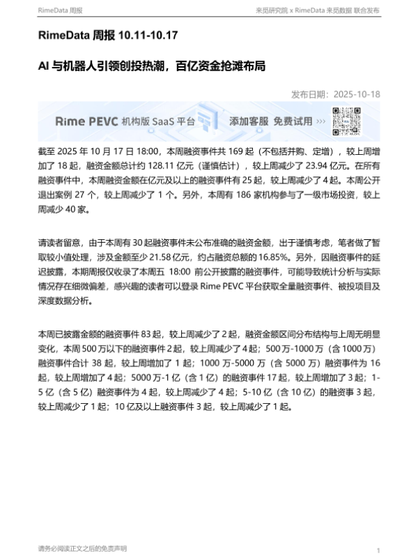 【来觅研究院 x RimeData来觅数据】【202510】AI与机器人引领创投热潮,百亿资金抢滩布局-13页