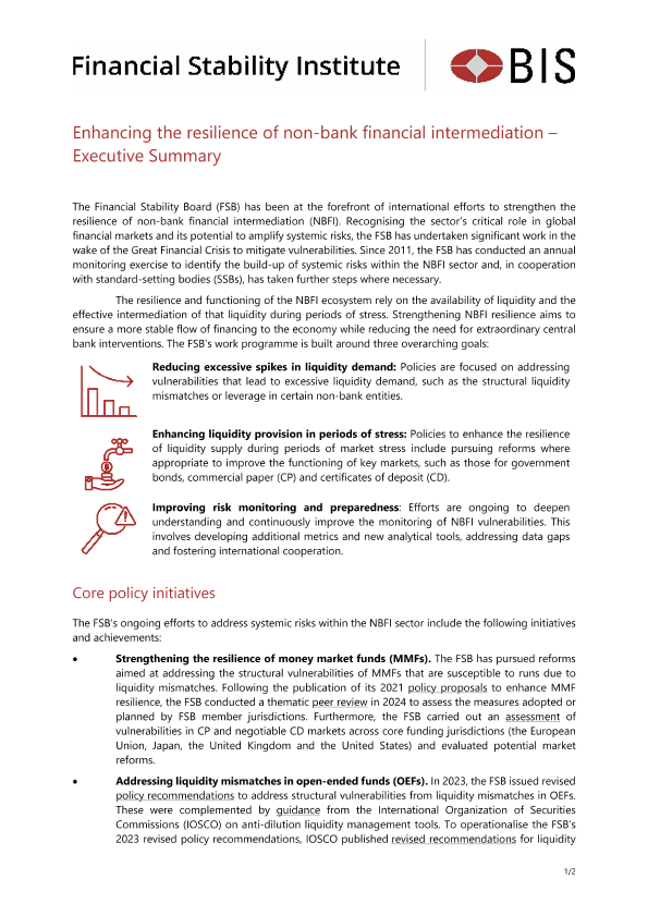 【Financial Stability Board(FSB)】【2024】Enhancing the resilience of non-bank financial intermediation – Executive Summary-2页