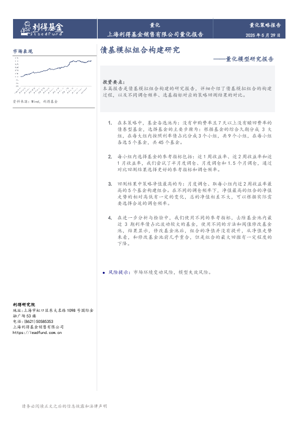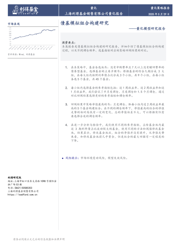 【上海利得基金销售有限公司】【202505】债基模拟组合构建研究——量化模型研究报告-11页