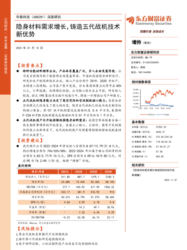 【东方财富证券】【20230110】深度研究:隐身材料需求增长,铸造五代战机技术新优势-29页
