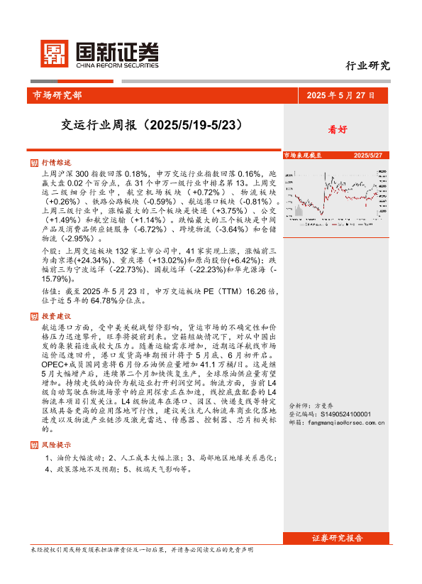 【国新证券股份有限公司市场研究部】【202505】交运行业周报(2025/5/19-5/23)-5页
