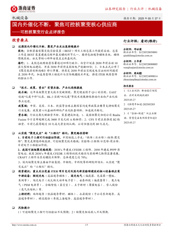 【浙商证券】【202505】国内外催化不断,聚焦可控核聚变核心供应商-5页