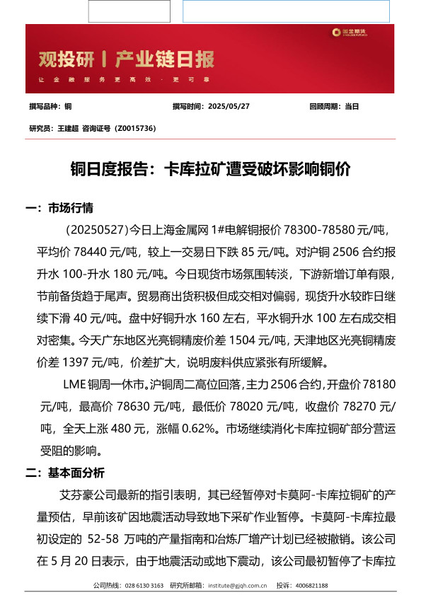 【国金期货】【202505】铜日度报告:卡库拉矿遭受破坏影响铜价-3页