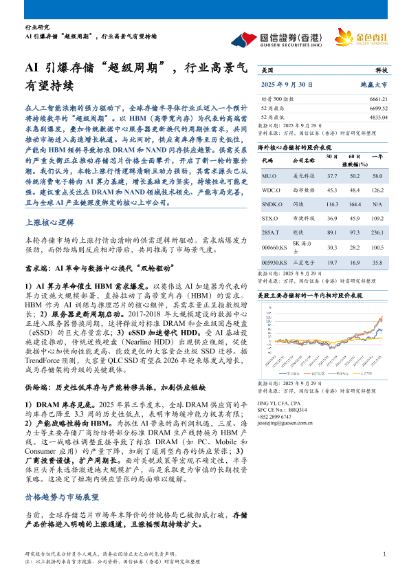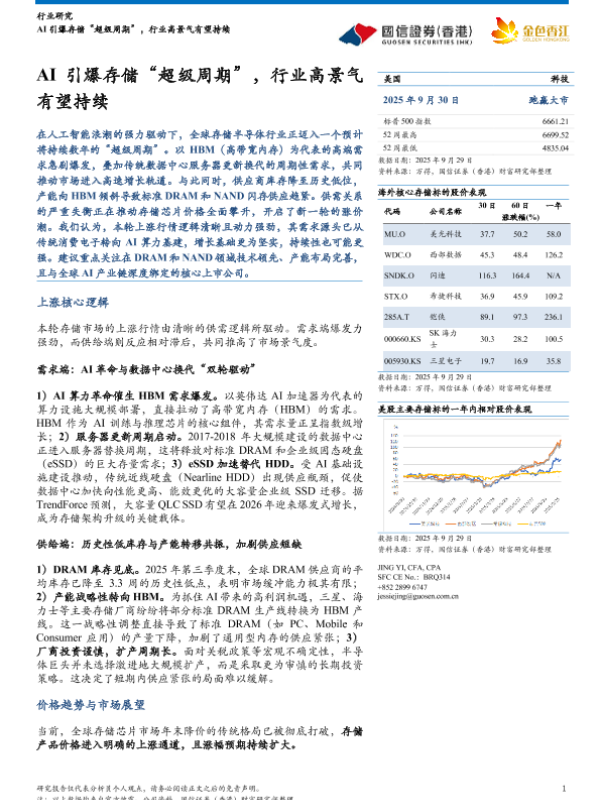 【国信证券(香港)财富研究部】【202509】AI引爆存储“超级周期”,行业高景气有望持续-4页