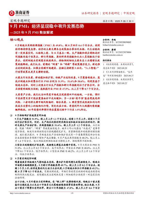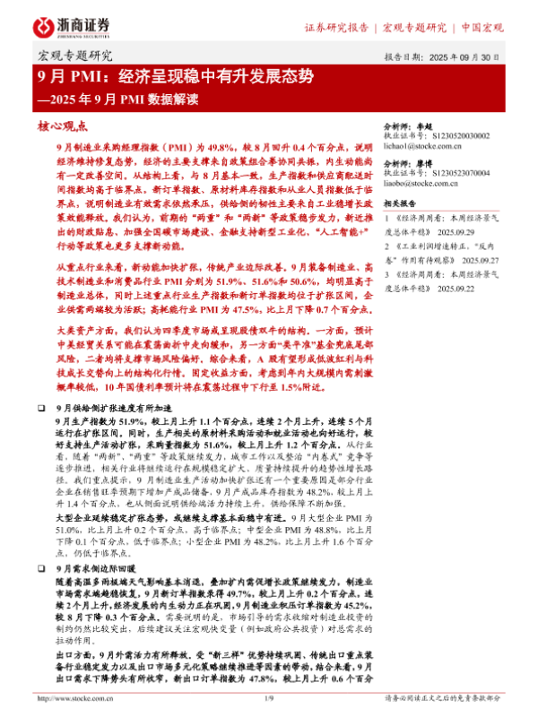 【浙商证券】【202509】9月 PMI:经济呈现稳中有升发展态势—2025年 9月 PMI数据解读-9页