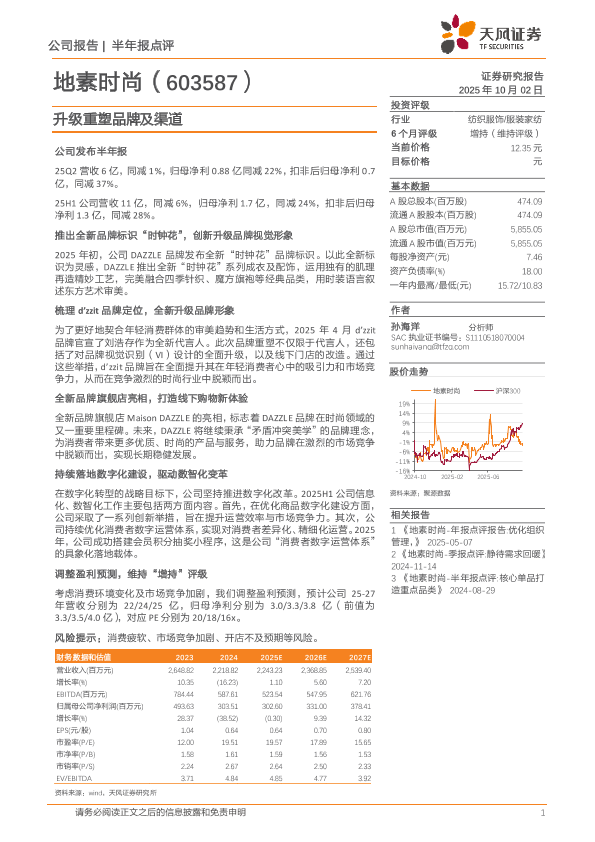 【天风证券】【202510】地素时尚-半年报点评 核心单品打造重点品类-3页