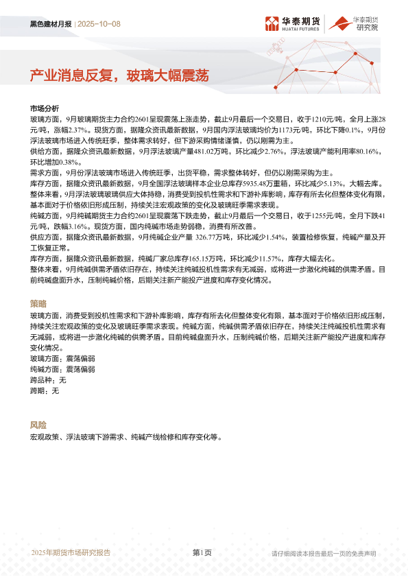 市场报告 建材行业 玻璃 纯碱 期货分析