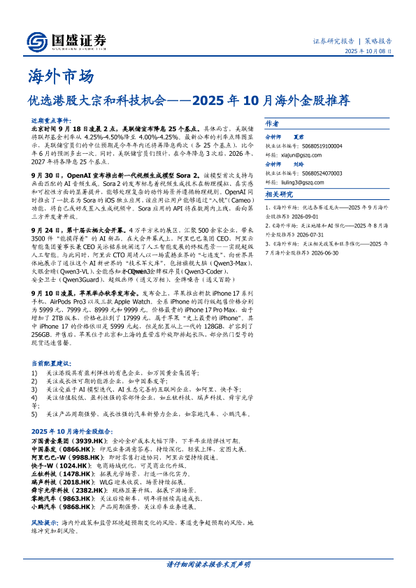 【国盛证券】【202510】优选港股大宗和科技机会——2025年10月海外金股推荐-18页