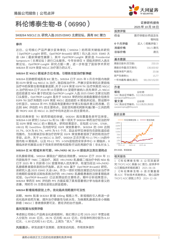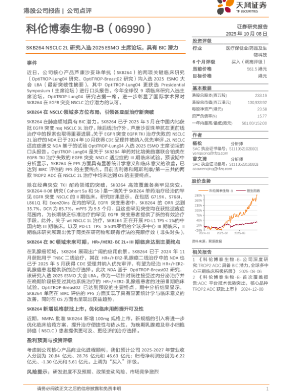 【天风证券】【202510】科伦博泰生物-B(06990):SKB264_NSCLC_2L研究入选2025_ESMO主席论坛_具有BIC潜力-2页