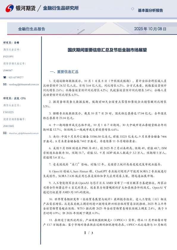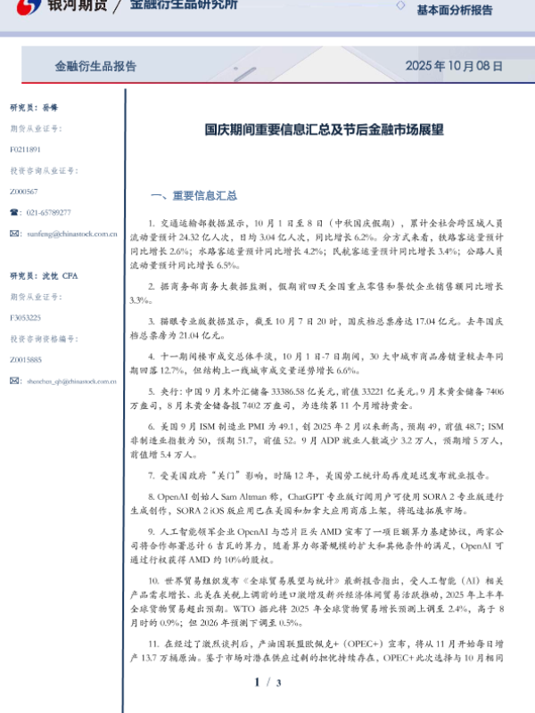 【银河期货有限公司金融衍生品研究所】【202510】国庆期间重要信息汇总及节后金融市场展望-3页