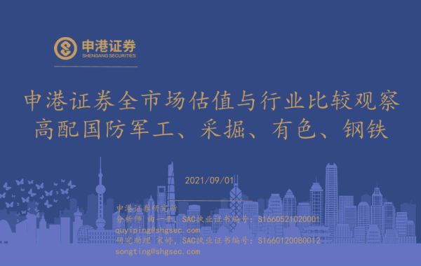 【申港证券】【20210901】全市场估值与行业比较观察:高配国防军工、采掘、有色、钢铁-28页