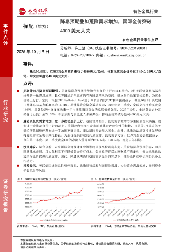 【东莞证券】【202510】降息预期叠加避险需求增加_国际金价突破4000美元大关-2页