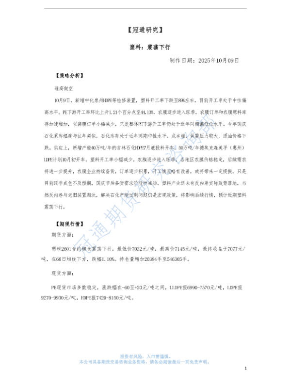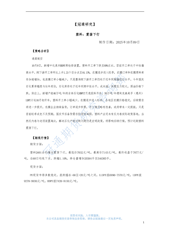 【冠通期货】【202510】塑料:震荡下行-3页